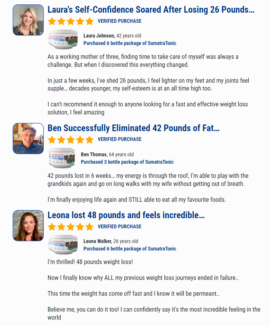 But then, I stumbled upon a game-changer that flipped the script on my weight loss journey – Sumatra Slim Belly Tonic. This little powerhouse not only ramps up the quality of your sleep but also kicks those cravings to the curb. And that's not all – it's like a one-stop-shop for all things wellness, from boosting your energy levels to giving your skin that coveted glow.